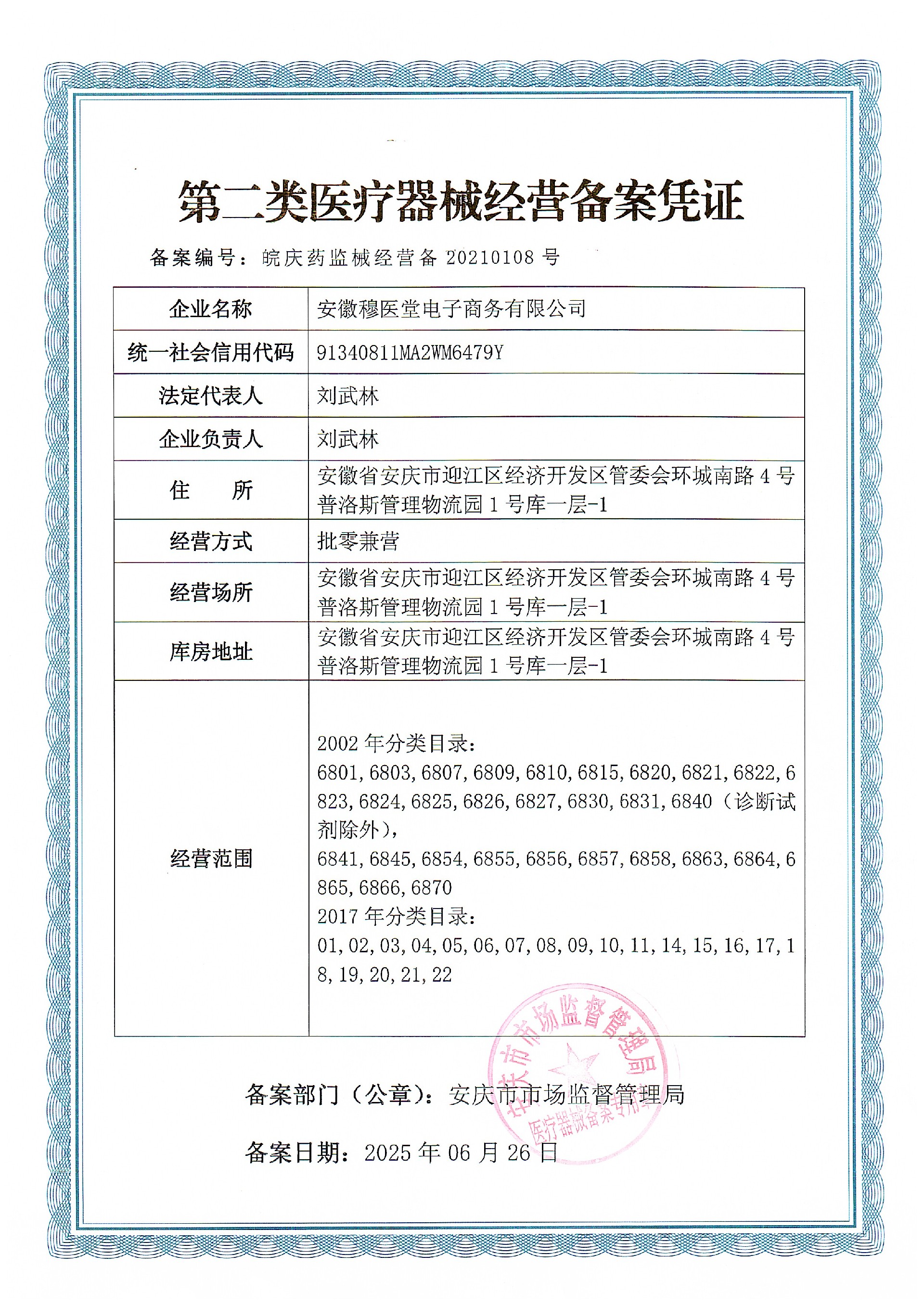 公司以授權(quán)品牌“穆一堂”,已經(jīng)在淘寶、京東、拼多多、百度健康商城、快手、美團等多個主流電商平臺開通店鋪,公司運營資質(zhì)產(chǎn)全,獲得了:醫(yī)療器械經(jīng)營備案憑證、醫(yī)療器械網(wǎng)絡(luò)經(jīng)營備案、食品經(jīng)營許可證、互聯(lián)網(wǎng)醫(yī)療器械信息服務(wù)資格證、商標授權(quán)等資質(zhì)。經(jīng)營品類涵蓋了前列腺系列醫(yī)療器械,如凝膠、栓劑、膏貼等,還新推出了男科、婦科健康產(chǎn)品,以多品類產(chǎn)業(yè)格局,構(gòu)建此類用戶一站式健康服務(wù)業(yè)體系。